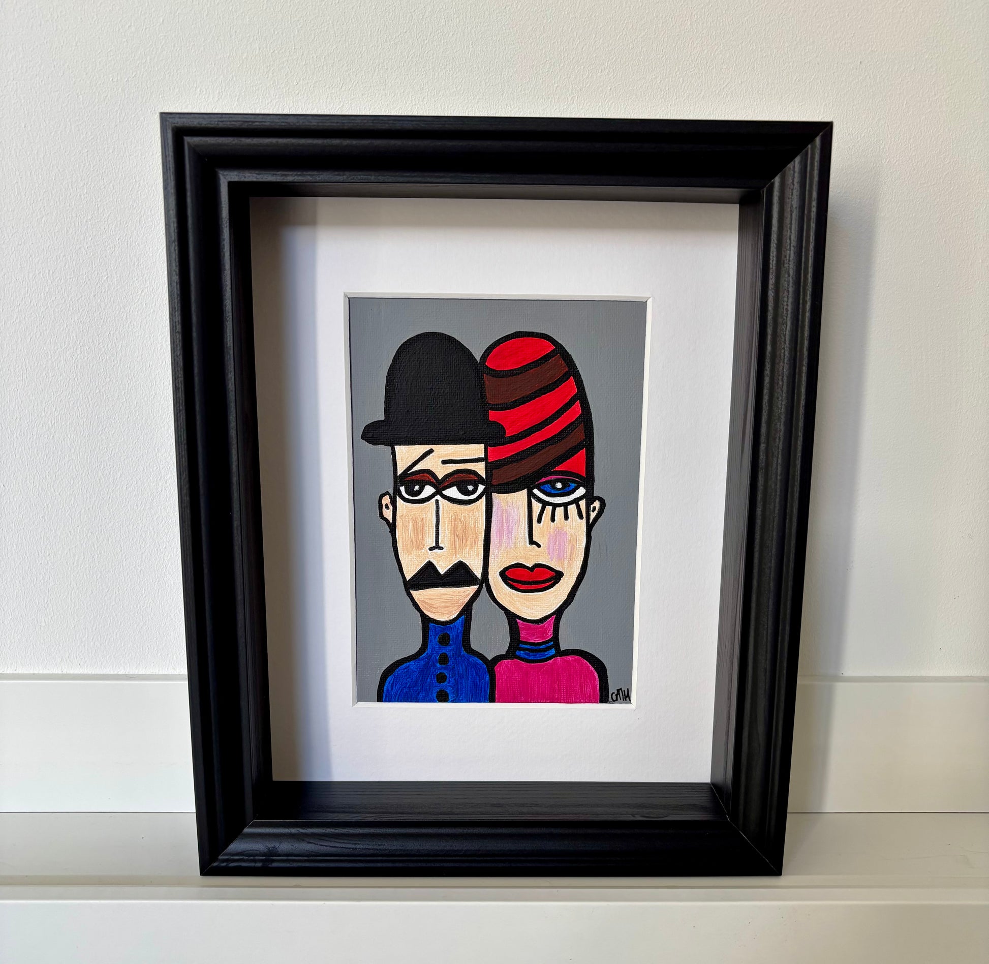 🎨 Apportez élégance et charme à vos murs avec ce poster figuratif original, reproduction fidèle de ma peinture “Toi et Moi”. L’œuvre représente un homme portant un chapeau melon de gentleman britannique et une femme aux cheveux rouges et bruns rétro, vêtue d’un haut rose, dans une composition harmonieuse et contemporaine. Ce poster apporte une touche d’art romantique et moderne idéale pour salon, bureau ou chambre.